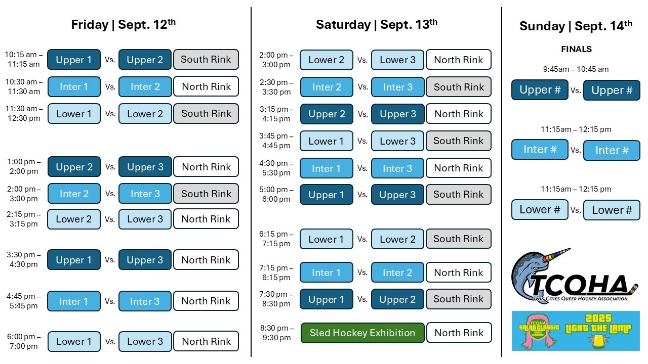 The TCQHA Salad Classic is a fun adult no-check hockey tournament. Players include members of the Twin Cities Queer Hockey Association, and LGBTQIA+ players from all over the world. This is an opportunity for TCQHA players to share the TCQHA spirit and mission with the wider hockey community and other LGBTQIA+ hockey associations.